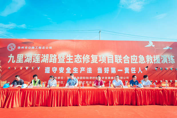 為提高全體參建人員安全意識,增強一線從業(yè)人員自救能力,營造濃厚的“安全生產(chǎn)月”活動氛圍,6月21日下午,陸港集團(tuán)、各參建方在九里湖國家濕地公園北側(cè)沿湖道路(蓮湖路)建設(shè)工程第一標(biāo)段蓮湖路施工現(xiàn)場開展了聯(lián)合應(yīng)急救援演練活動。